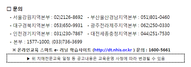 온라인 통합과정 교육 및 시험은 기존 스마트e러닝 사이트 http://dt.nhis.or.kr 에서 동일하게 진행됩니다.